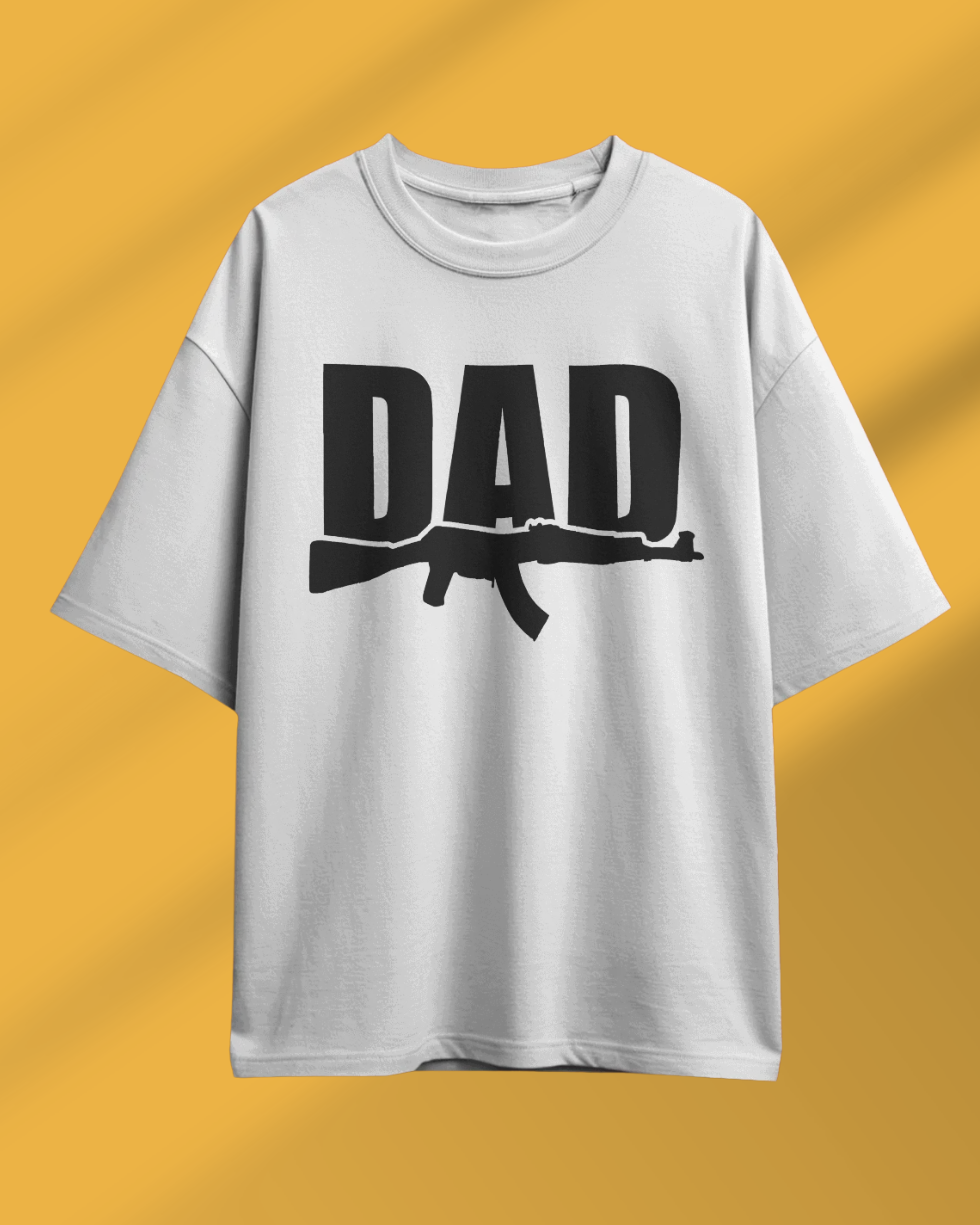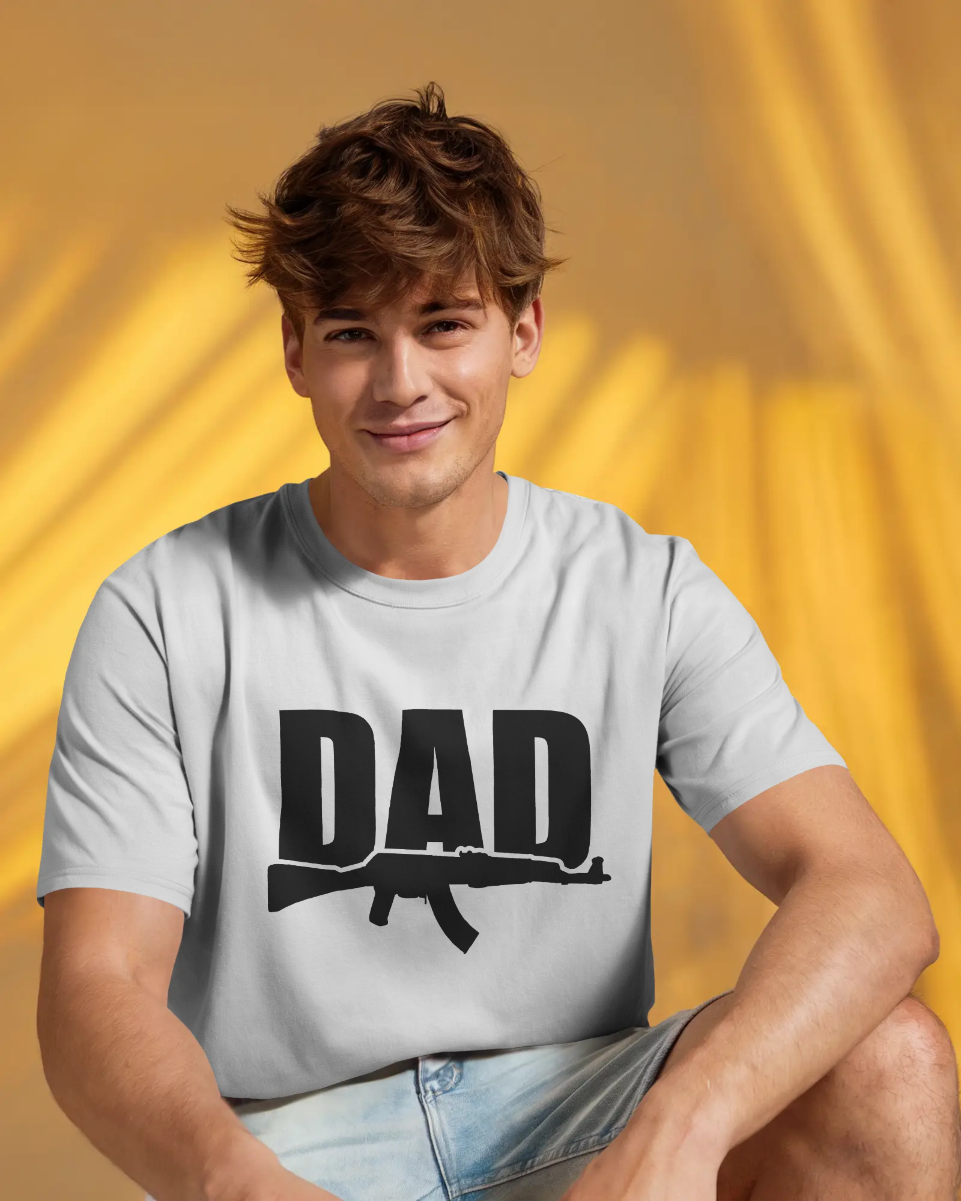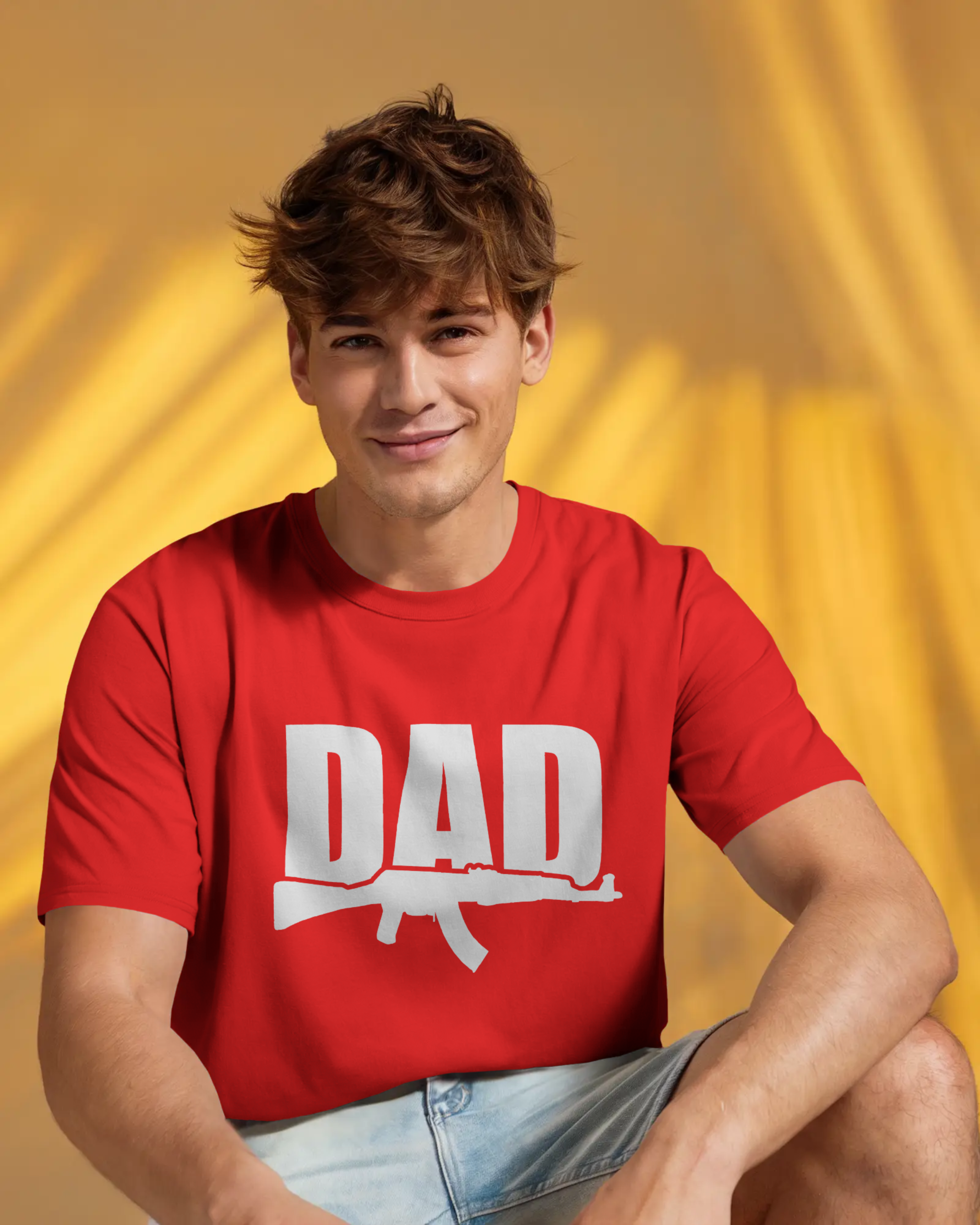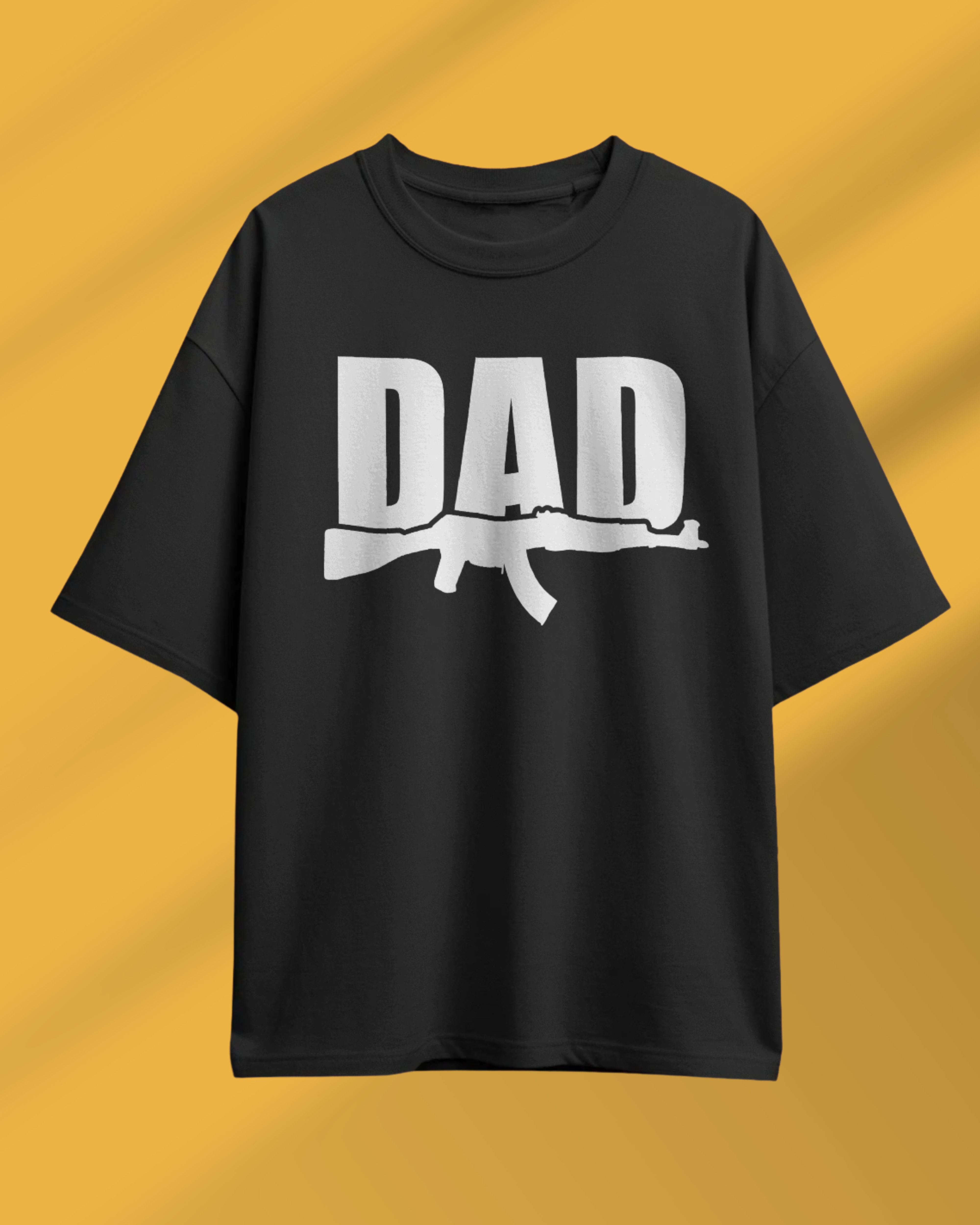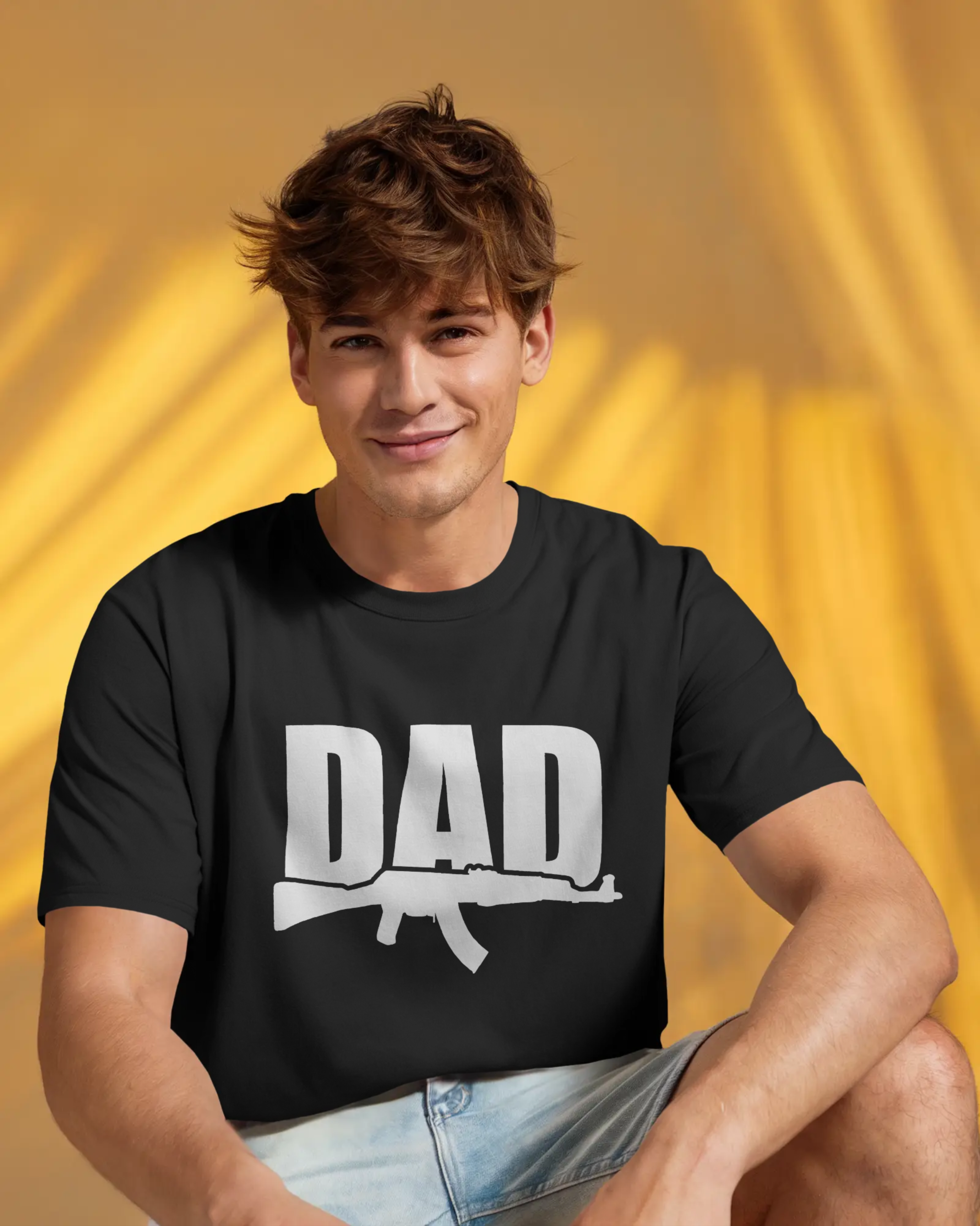 Make a fierce statement this Father’s Day with our “DAD” T-Shirt – designed for the protector, the provider, and the unshakable hero in your life. Featuring a bold “DAD” print integrated with a rifle silhouette, this tee is not just apparel – it’s attitude.