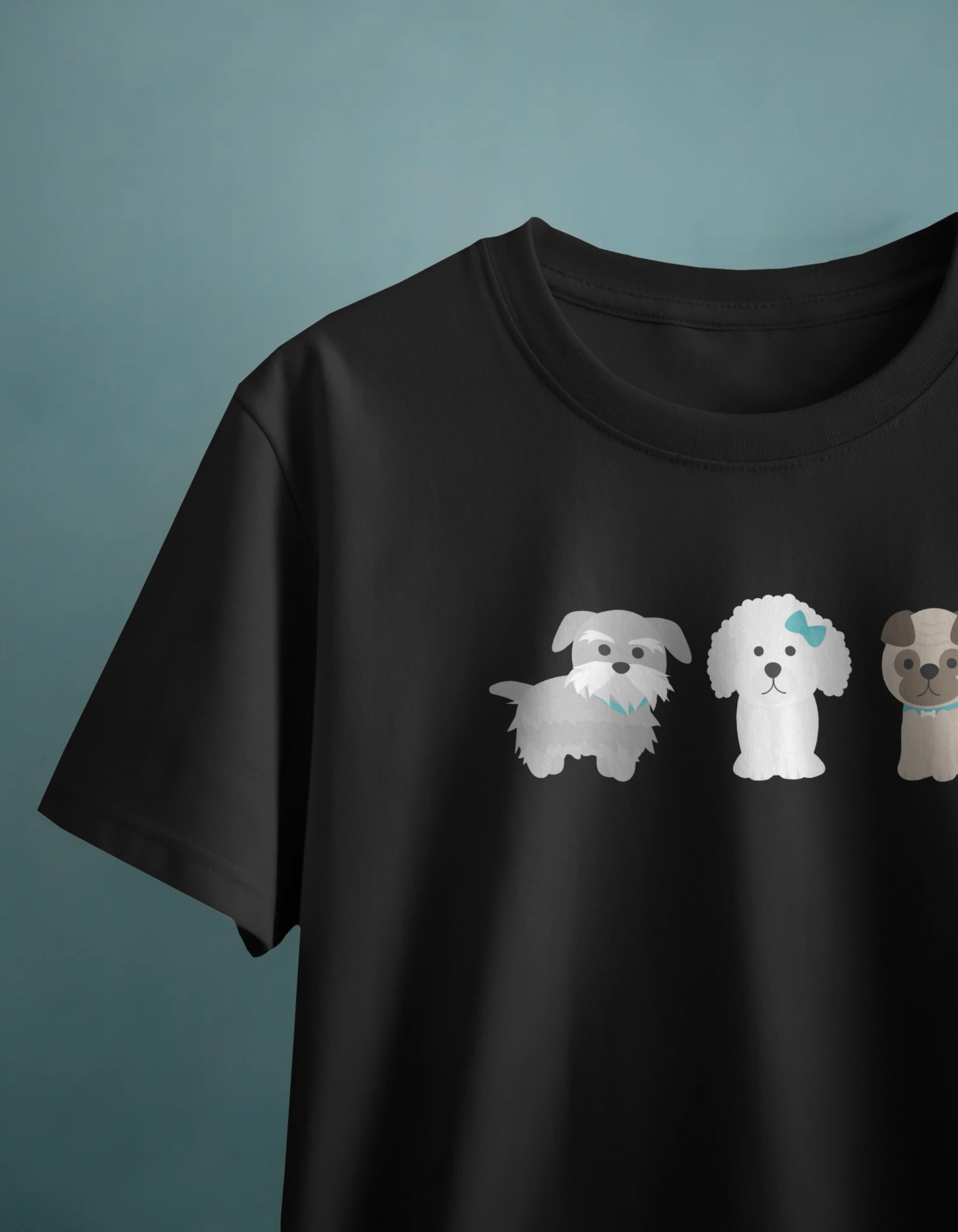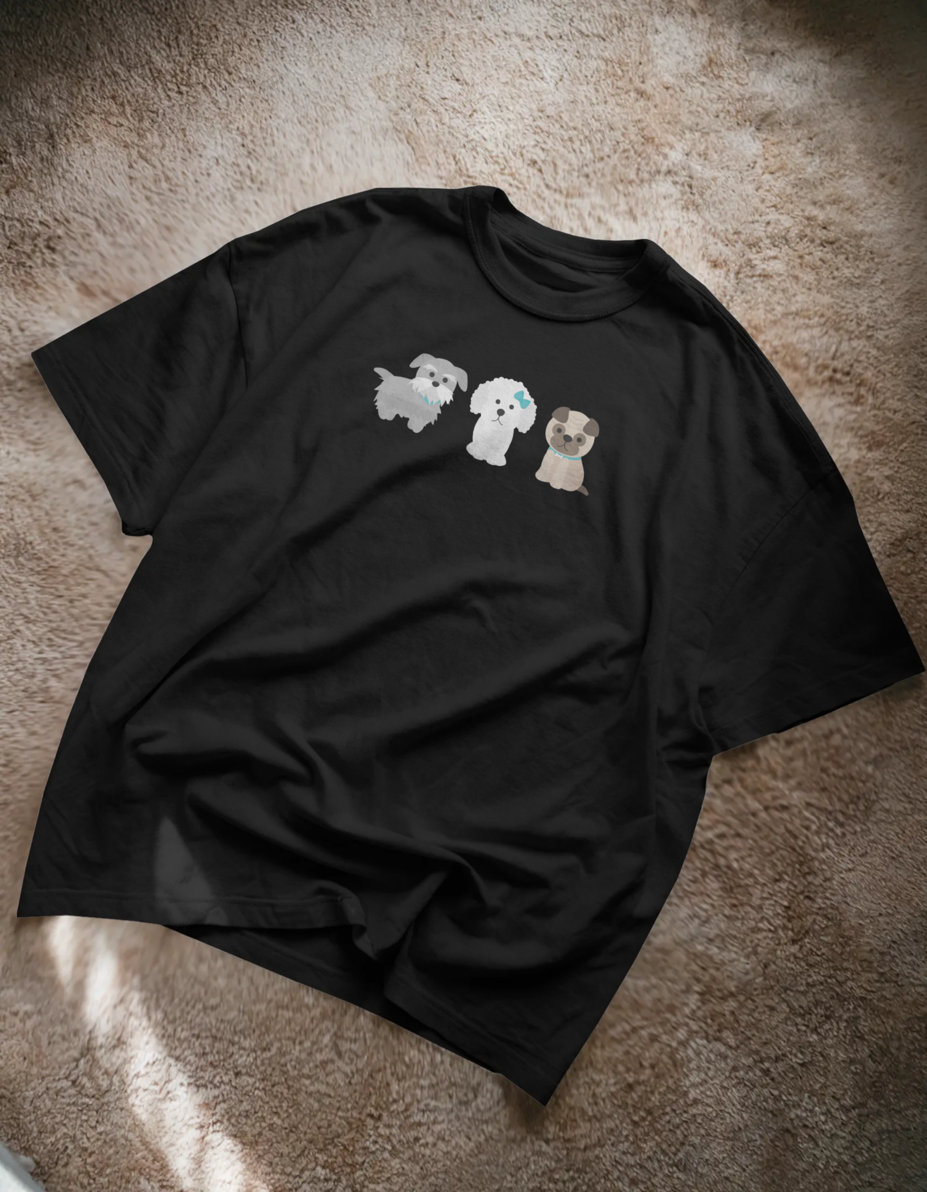 Step into comfort and cuteness with our Puppy Parade Regular T-Shirt. Featuring three adorable illustrated puppies printed on premium black cotton, this tee is perfect for dog lovers who appreciate minimalist charm. Whether you're lounging or heading out, this shirt brings playful vibes and effortless style to your everyday look.