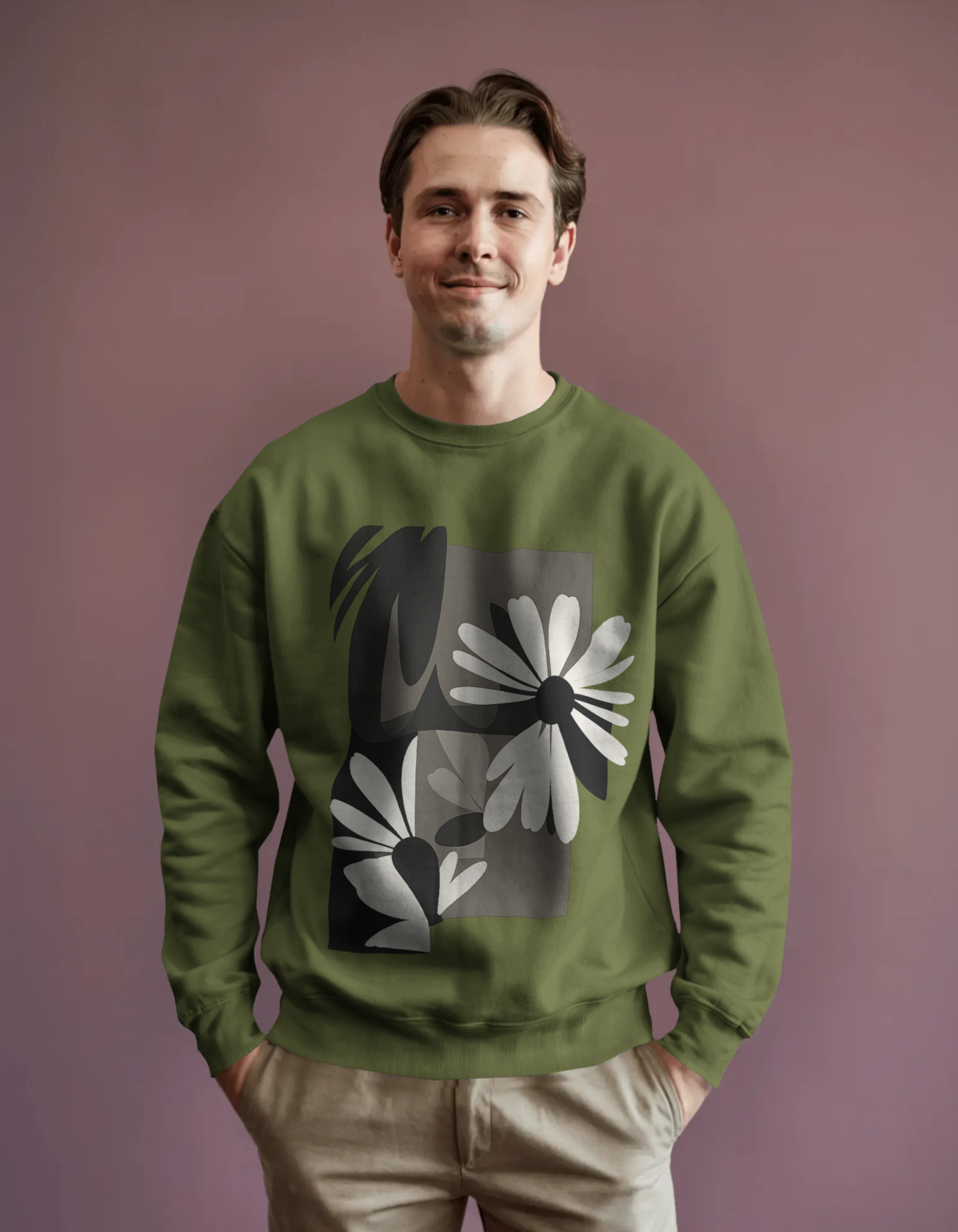 Elevate your casual style with our Floral Form Sweatshirt, blending bold botanical graphics with a minimalist urban vibe. This piece features striking grayscale floral artwork printed on a high-quality cotton blend for all-day comfort.